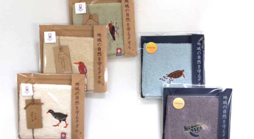 軽くて持ち運びやすいハンドタオルは、お土産や生活雑貨としても人気ですが、売上から100円が地域の自然保護活動をしている団体に寄付されるという素晴らしい仕組みなのです。もちろん多くの企業が寄付つきの商品を販売されていますが、1枚あたりの寄付金額を明確にし、100円という金額設定からもECOひいきプロジェクトさんの熱い想いが伝わってきます。