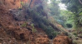 国頭村の山を縦に走る 大国林道の長尾橋に向けての一部が先日の大雨でがけ崩れをおこし、現在通行止めになっております。
